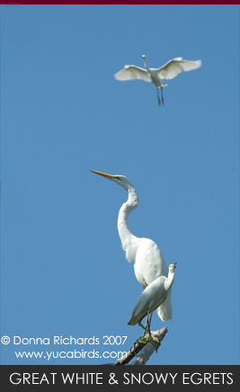 The last photo allows a comparison between the Great White (back) and Snowy Egret (front).