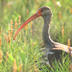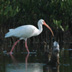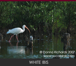 white, red/pinkish face and bill, red and legs; juvenile's feathers are brown and white |