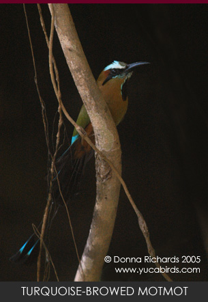 tail often moves like a pendulum; sometimes referred to as pajaro reloj (clock-bird) for this reason; the Maya in the Yucatan almost exclusively refer to it as "Toh"; bird is more greenish in some areas |