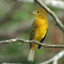 male bright red with black/greyish tinge to tip of wings; female yellow with olive/brown wings and tail